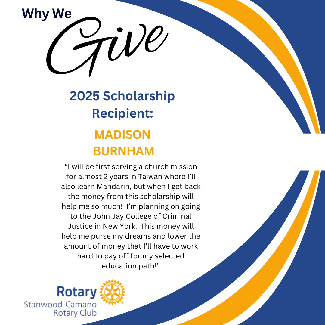 Last year Stanwood-Camano Rotary Foundation offered 7 scholarships @ $1,000